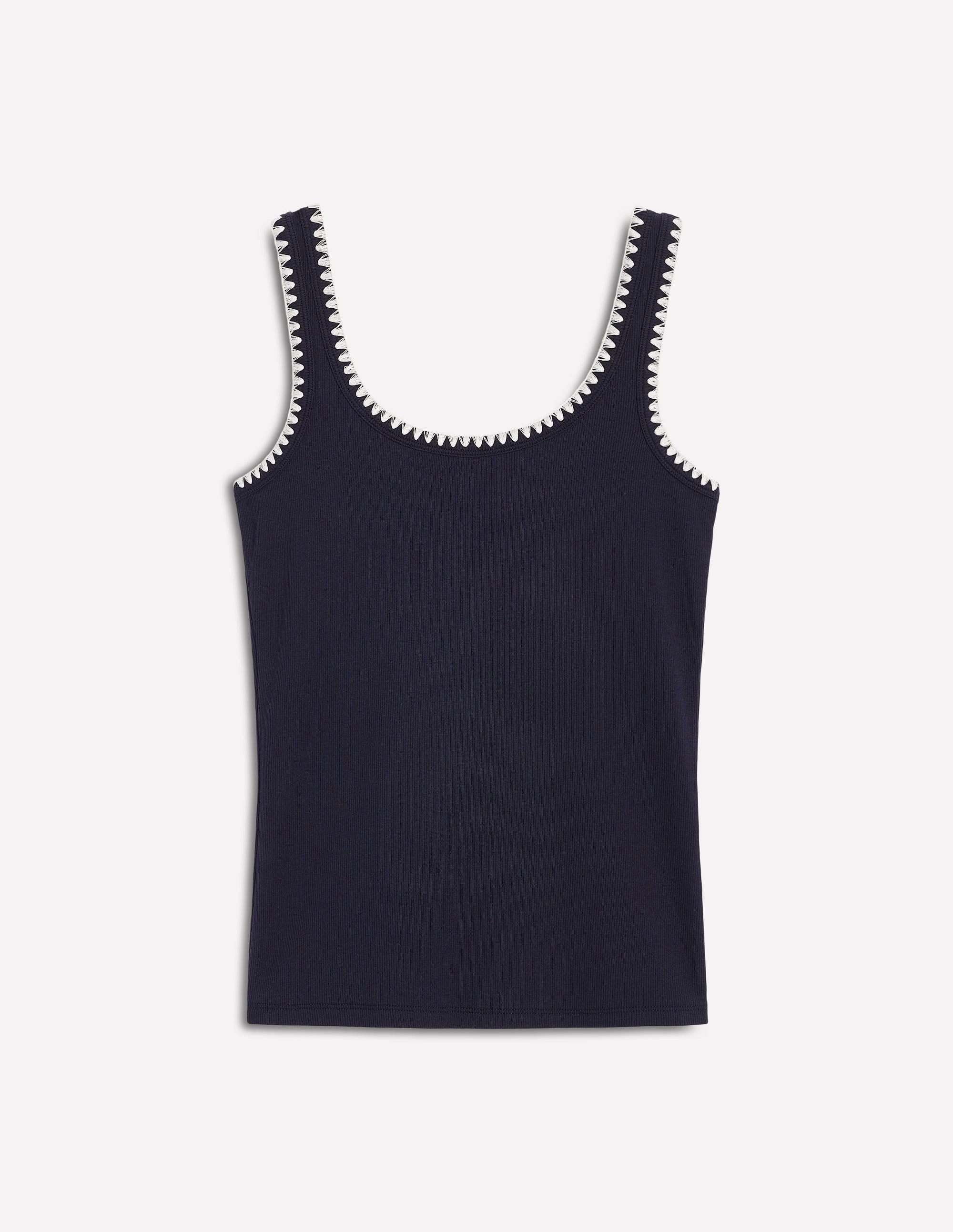 This flattering scoop neck vest with contrast crochet trim will be a main player in your summer wardrobe. It's spun in cotton with a little stretch for bulk-free layering on cooler days.Graduated cushioning softens impact zones while maintaining energy return