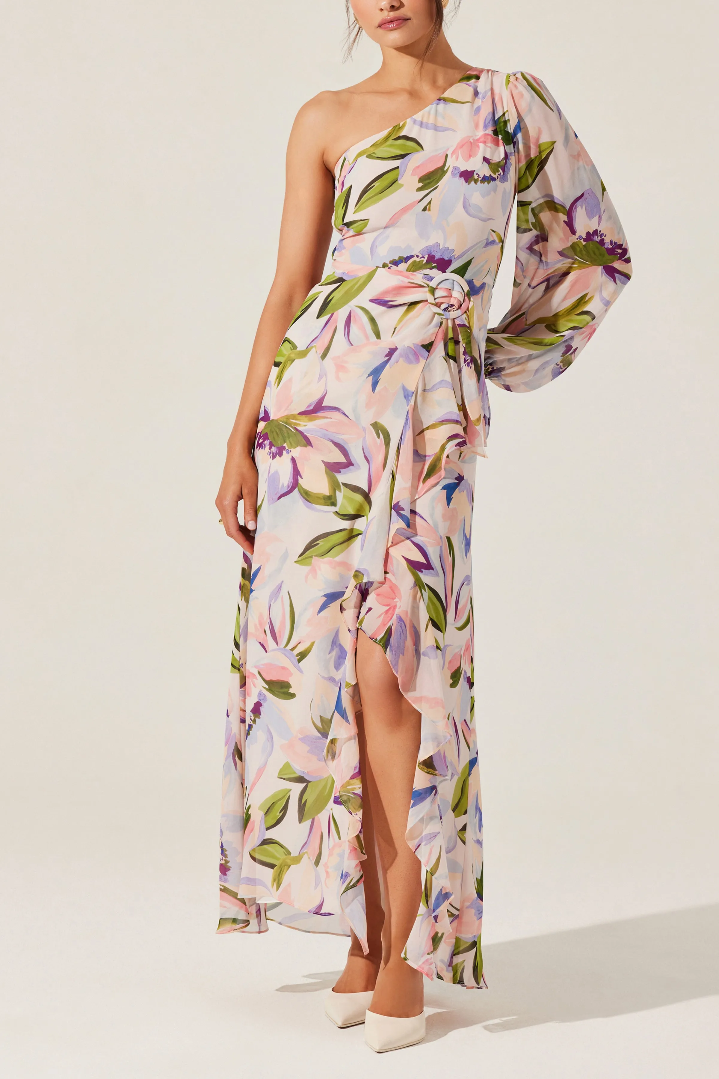 - Floral one shoulder dress
