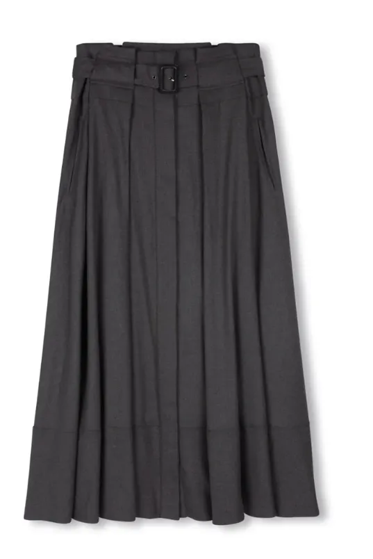 Beige Grey Wool Belted Skirt W-21377 Seamless Style