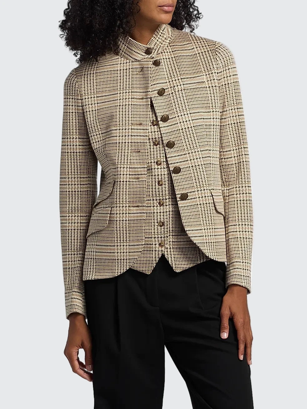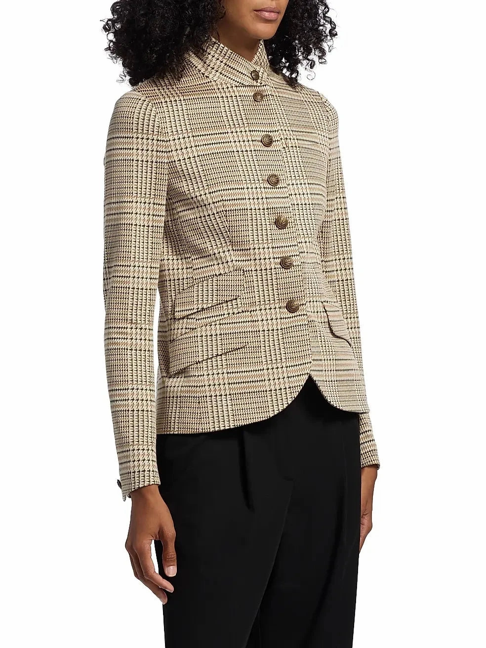 rafted of plaid stretch fabric, rag & bone's Slade single-breasted blazer is designed with a stand collar and side flap pockets.