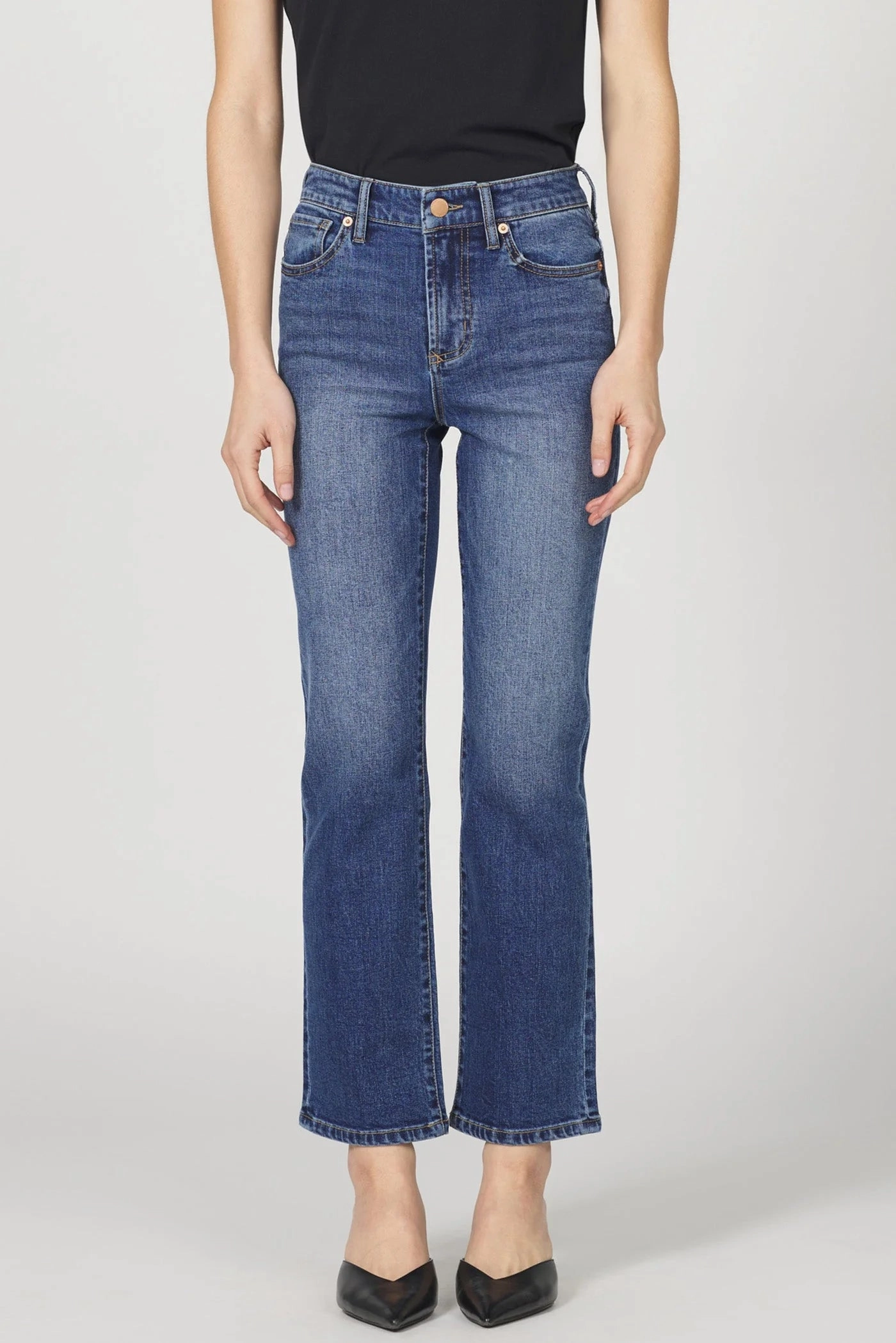 The Anika straight leg jean in mid high rise crafted with a perfect blend of comfort and style.