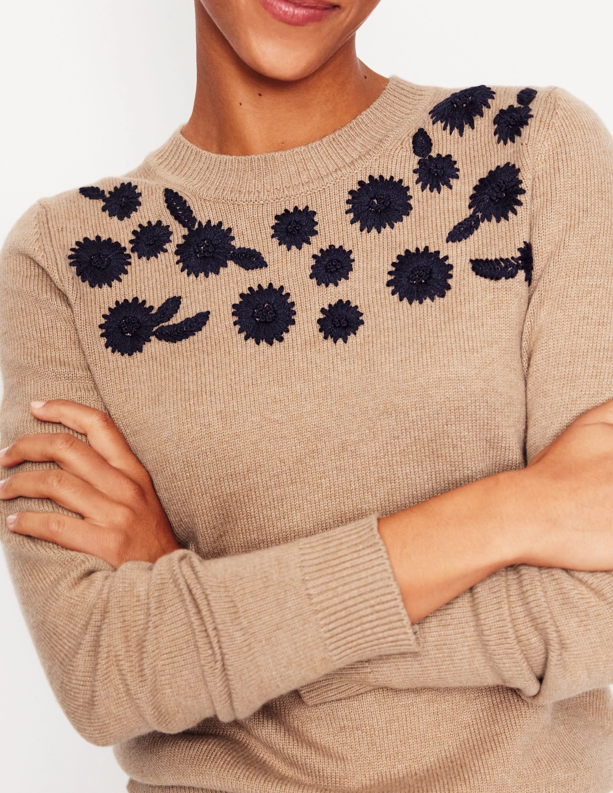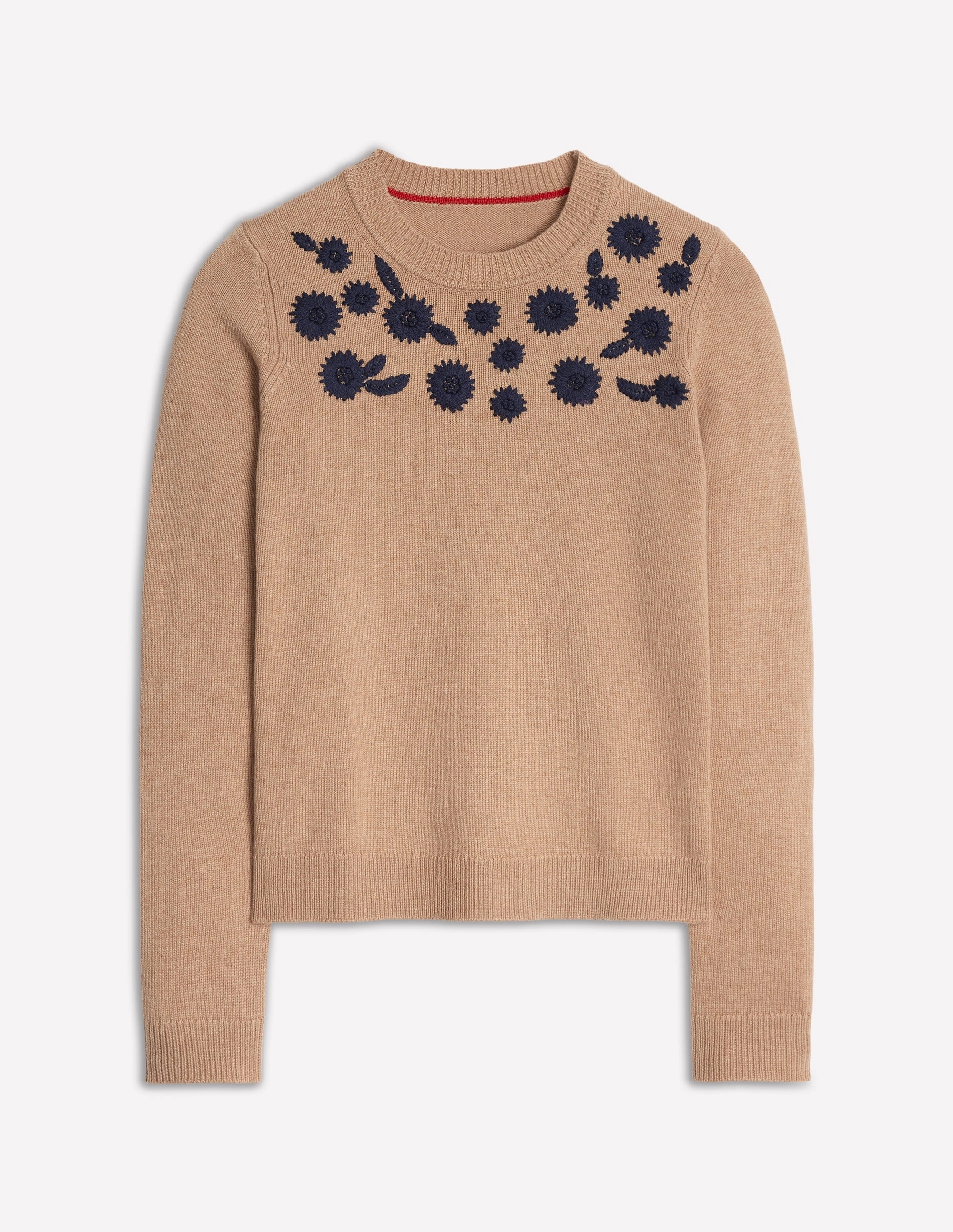 Florals arent just reserved for spring, you know; were making a case for perennials with this jumper. Its embroidered with blooms sprouting across the front and finished with ribbed trims.Easily complements denim and formal trousers