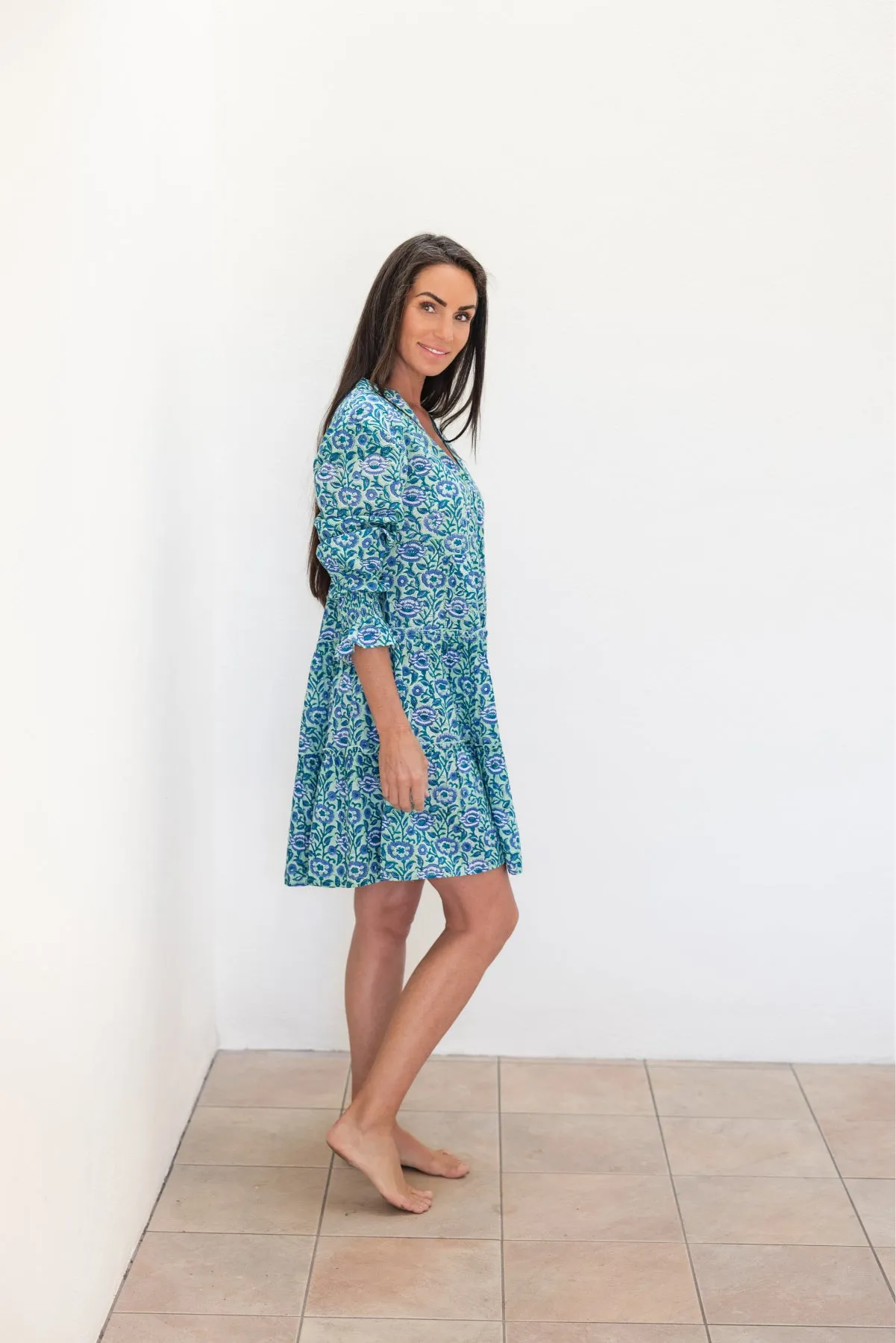 Add a touch of romantic detail to your wardrobe with our long-sleeved cotton mini Dover dress. Featuring a flattering V-neck and unique smocked wristbands that finish with a subtle ruffle. Crafted from soft cotton and designed with an above-the-knee hemline for a playful silhouette.